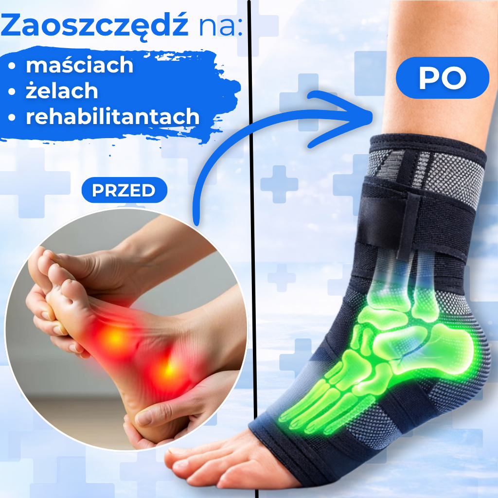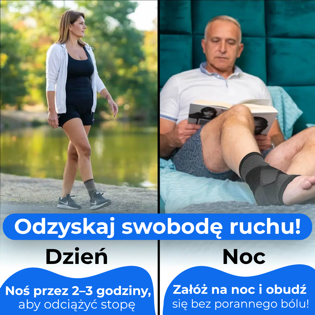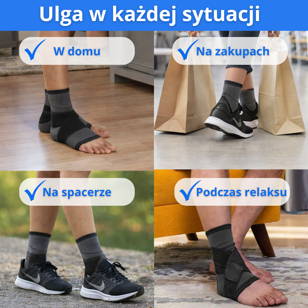 FixStep został stworzony z myślą o osobach, które odczuwają nawracający ból stopy, pięty i dyskomfort przy chodzeniu. Kompresja 360° oraz regulowane paski stabilizujące pomagają odciążyć przeciążone miejsca, wesprzeć łuk stopy i zwiększyć komfort każdego kroku.